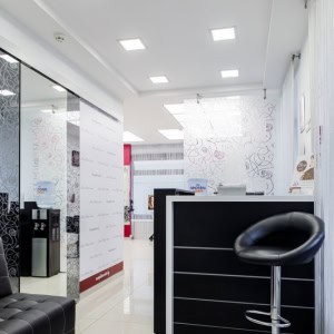 Интерьер салона выполнен в современном стиле, создавая уютную и расслабляющую атмосферу. Каждое рабочее место оснащено всем необходимым для комфортного и качественного выполнения процедур. Салон также оборудован удобными зонами ожидания, где клиенты могут расслабиться перед или после процедур.